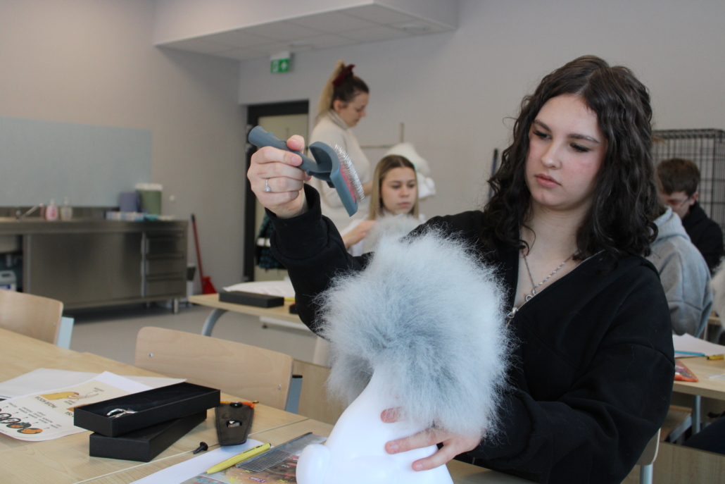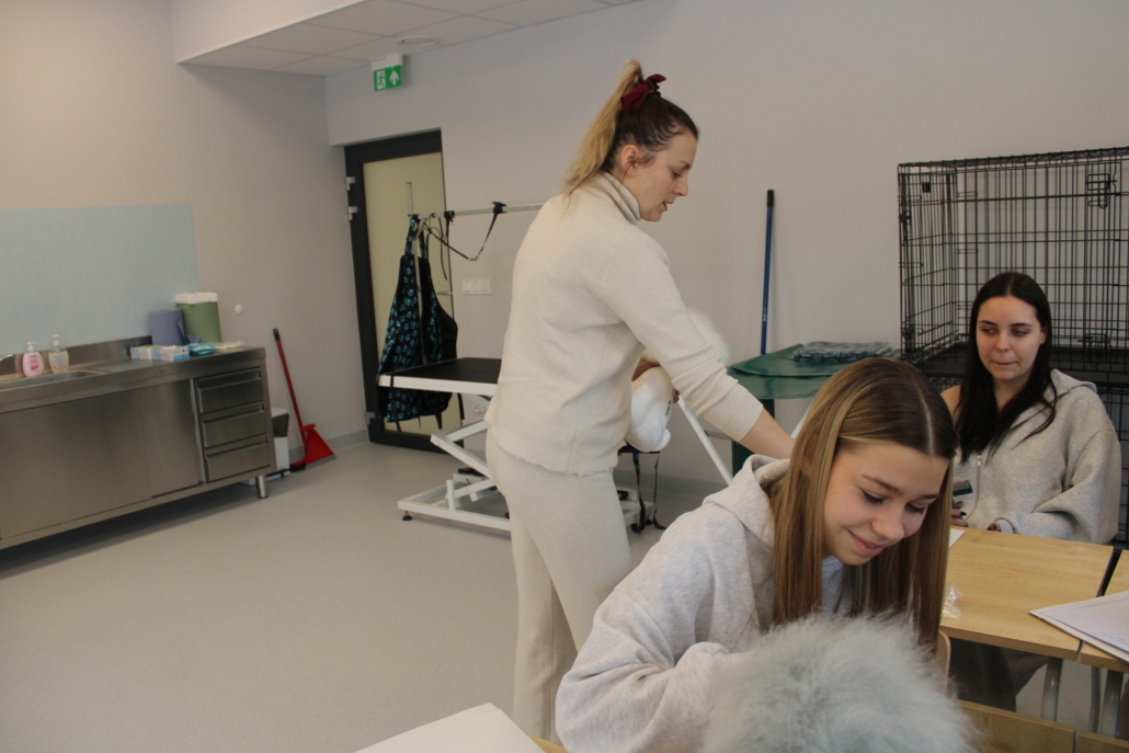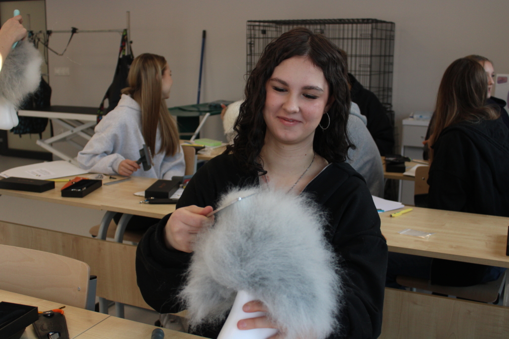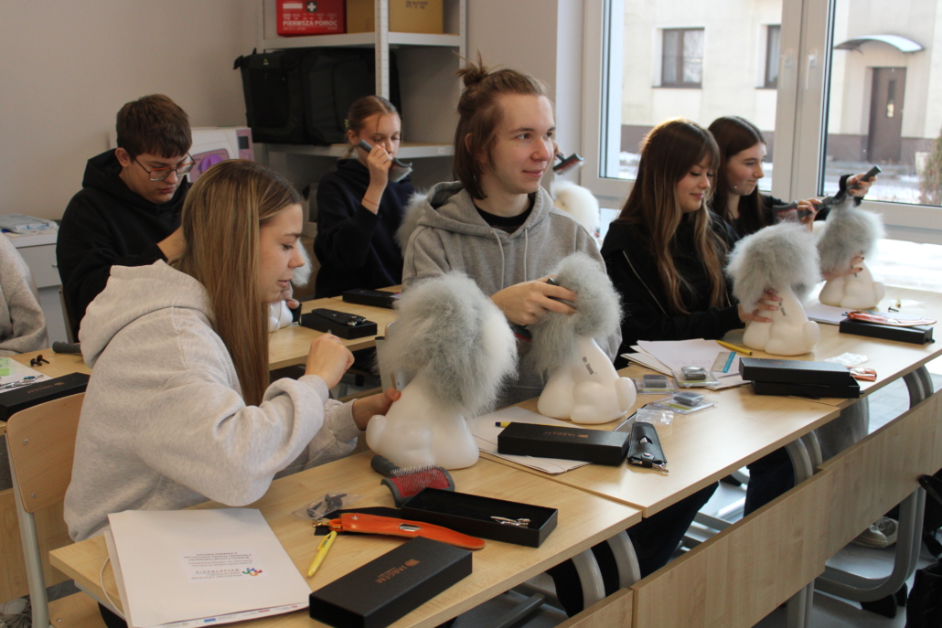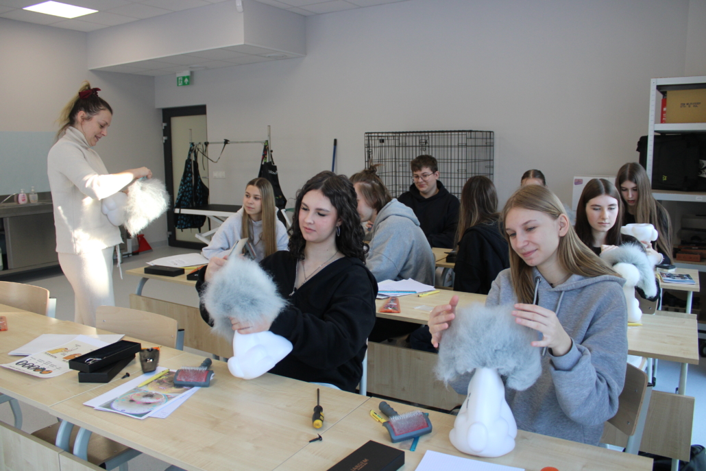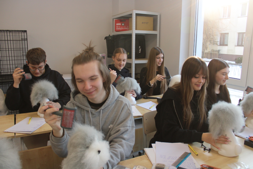 Podczas szkolenia uczestnicy poznali podstawy pracy groomera, zasady bezpieczeństwa i higieny pracy, a także techniki pielęgnacji psów i kotów. Duży nacisk położono na prawidłowe przygotowanie zwierzęcia do zabiegów, ocenę stanu skóry i sierści oraz dobór odpowiednich narzędzi i kosmetyków. Młodzież uczyła się również zasad bezpiecznej pracy ze zwierzętami, z uwzględnieniem ich dobrostanu oraz indywidualnych potrzeb.