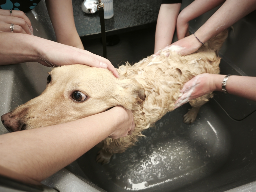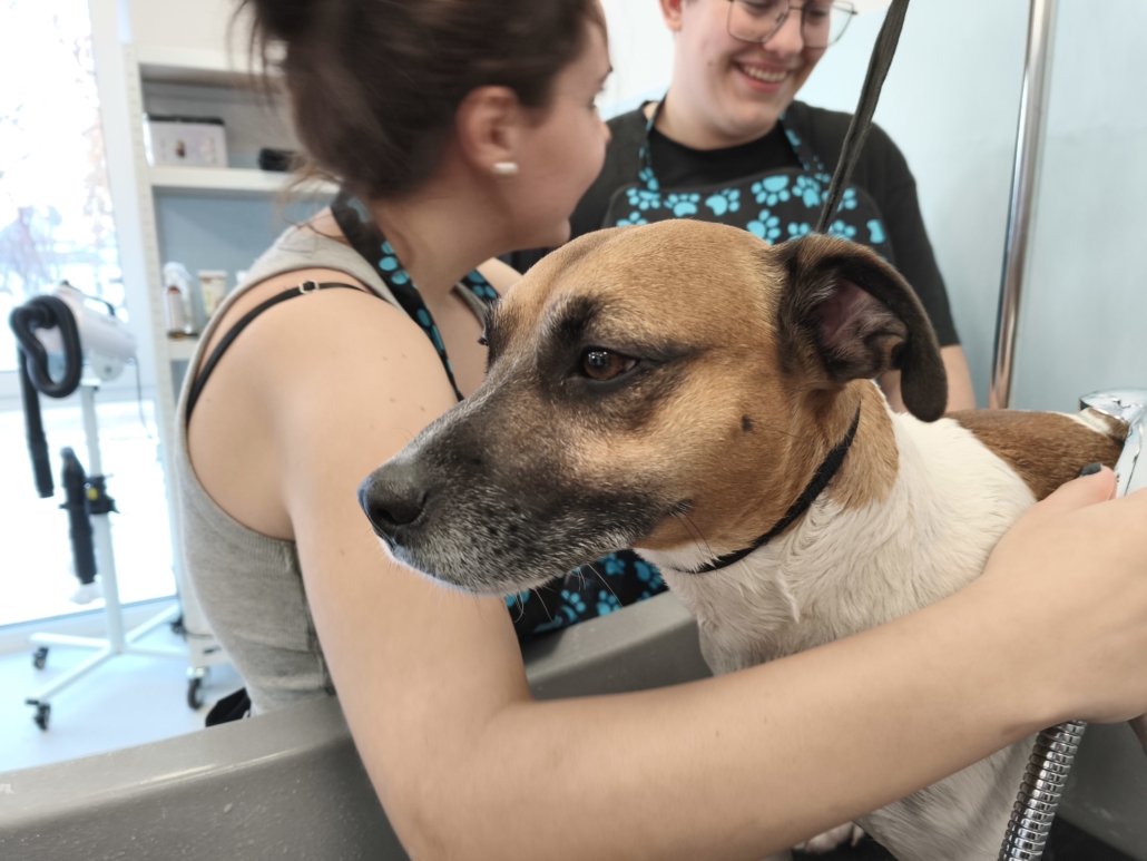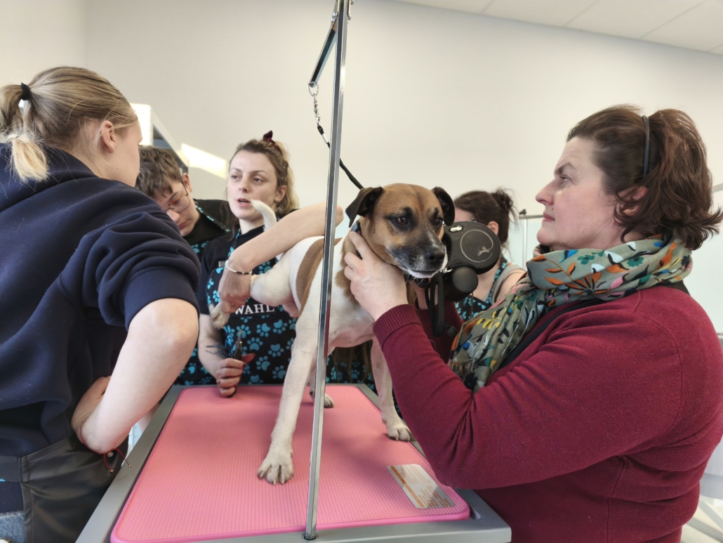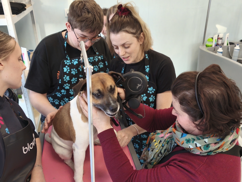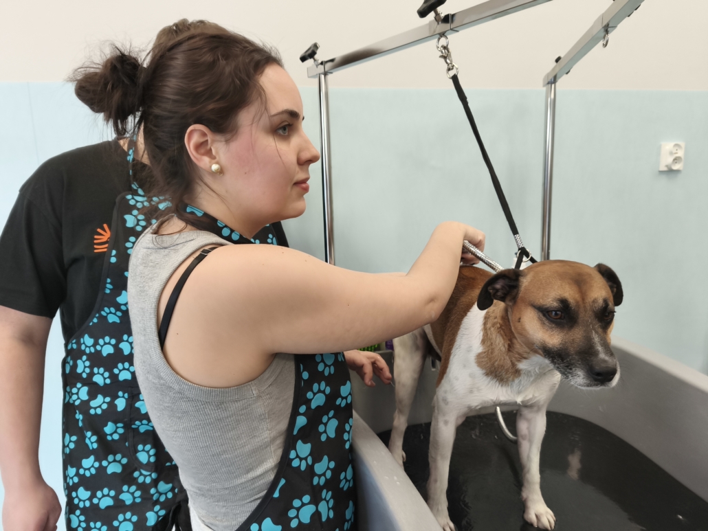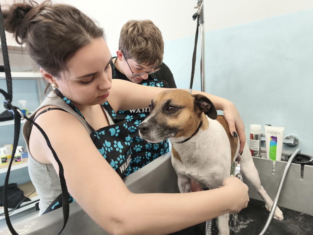 Najważniejszą częścią szkolenia były zajęcia praktyczne, podczas których uczestnicy pracowali na rzeczywistych zwierzętach. W trakcie trzech dni szkoleniowych wykonano zabiegi pielęgnacyjne i strzyżenia na kilkudziesięciu psach oraz kilku kotach, co pozwoliło młodym uczestnikom zdobyć realne doświadczenie i pewność w wykonywaniu podstawowych czynności groomerskich. Każde zwierzę było inne, co dodatkowo uczyło elastyczności, uważnej obserwacji oraz indywidualnego podejścia.
