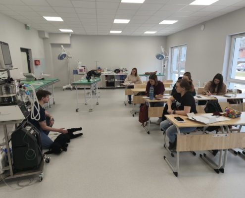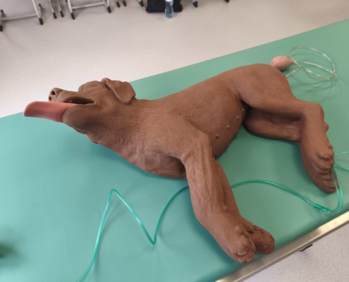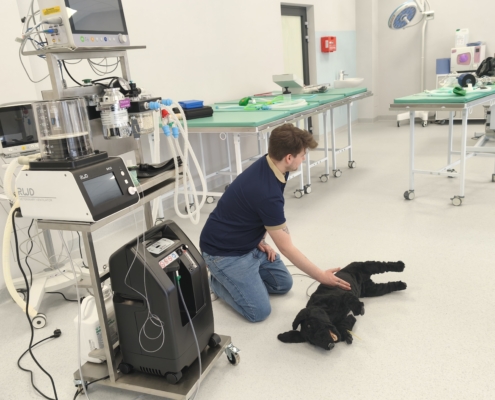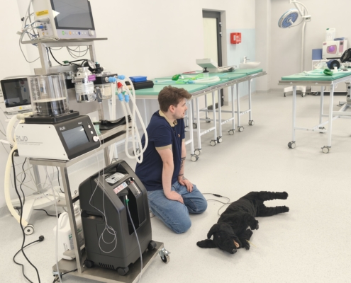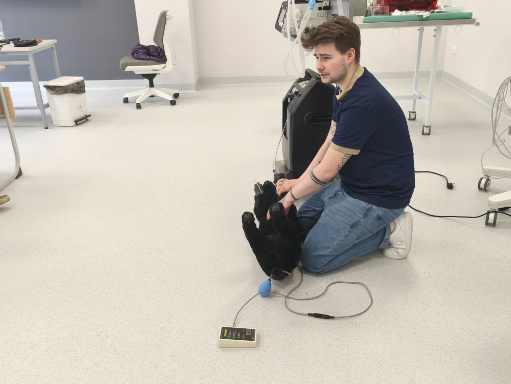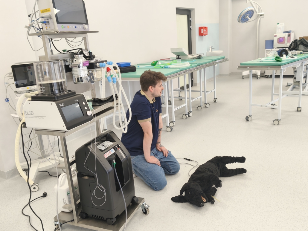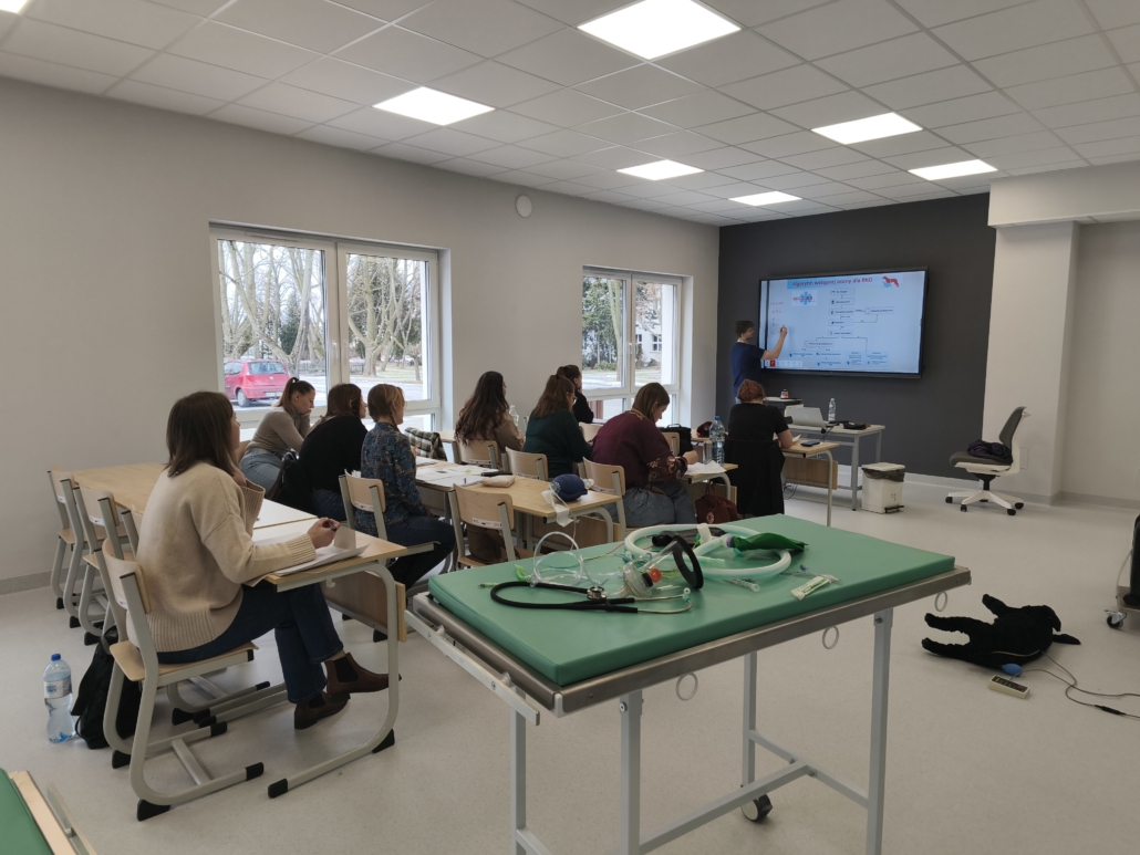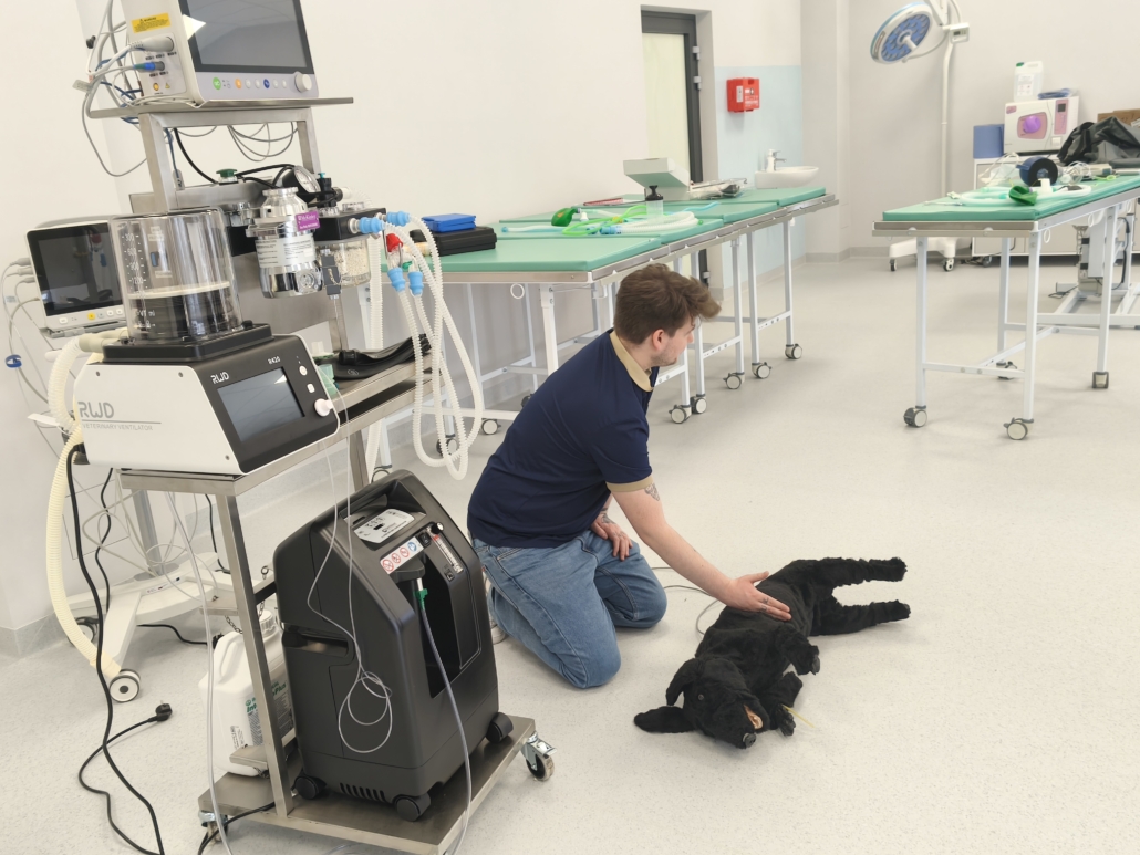Jednym z największych atutów szkolenia była możliwość pracy na pełnowymiarowym wyposażeniu sali zabiegowej — w tym aparatach do znieczulenia wziewnego, respiratorach, źródłach tlenu, monitorach parametrów, Dopplerach, pompach infuzyjnych, zestawach intubacyjnych i laryngoskopach. Uczestnicy mogli również korzystać z USG, sprzętu endoskopowego oraz fantomów psów służących do ćwiczeń RKO i BLS.