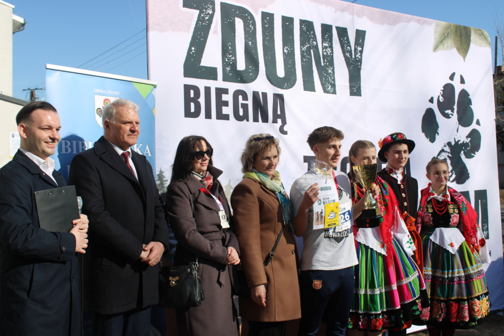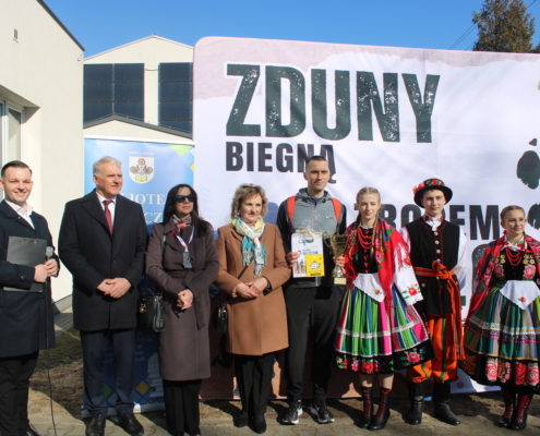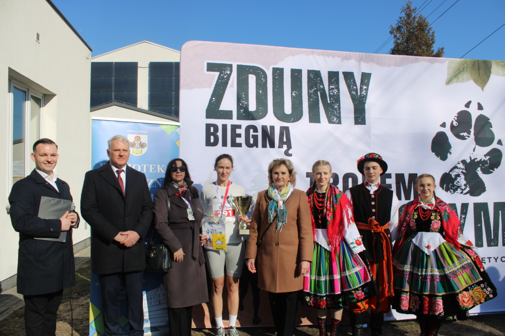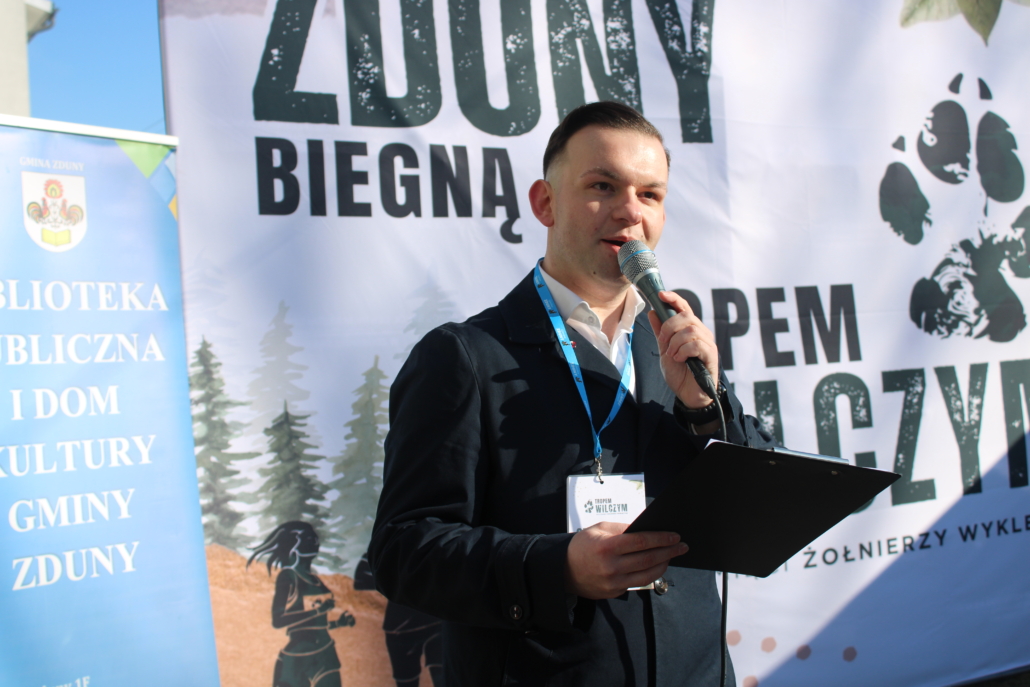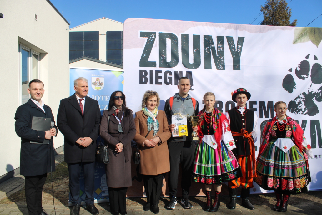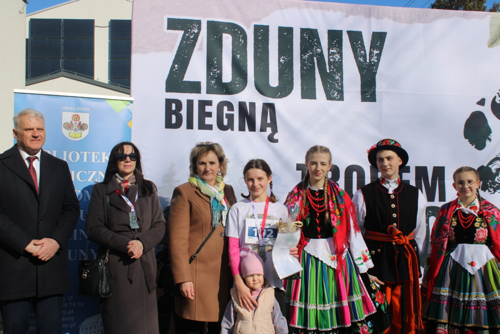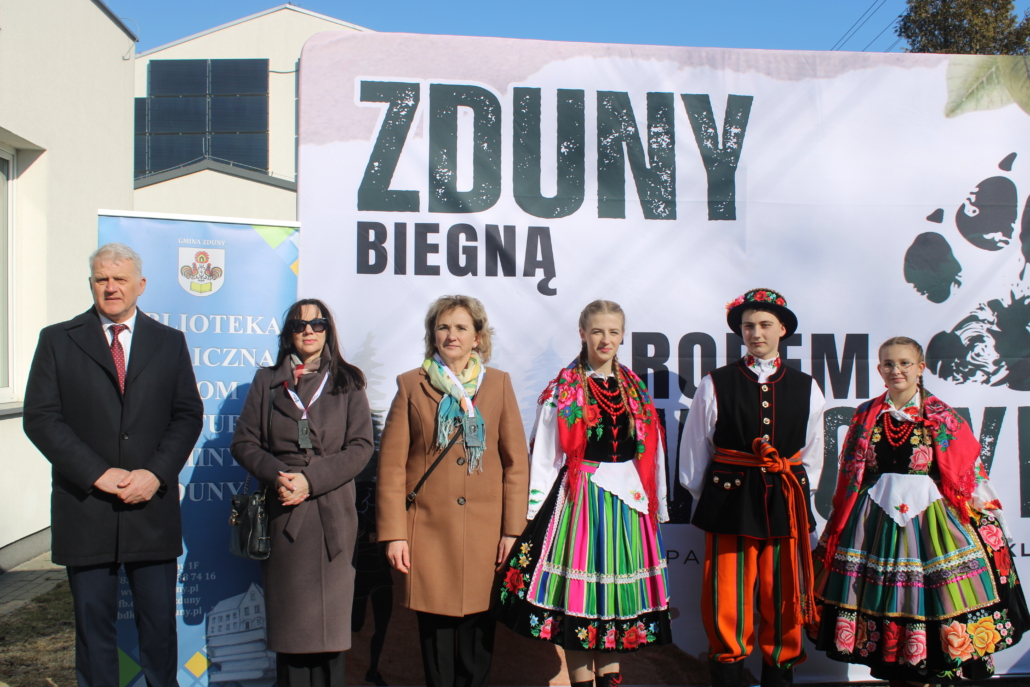 NOWE ZDUNY, 1 marca 2026 r. – Tegoroczny Bieg Tropem Wilczym w gminie Zduny zapisał się w historii nie tylko rekordową frekwencją, ale przede wszystkim niezwykłym, pełnym emocji początkiem. Wspólne działanie czterech instytucji – Gminy Zduny, Biblioteki Publicznej i Domu Kultury oraz szkół podstawowych w Nowych Zdunach i Bąkowie Górnym, a także ZSCKR w Zduńskiej Dąbrowie – przyniosło imponujący efekt. Ponad 300 uczestników stanęło na starcie tuż pod pomnikiem osoby szczególnej dla kilku pokoleń mieszkańców – Krystyny Idzikowskiej, patronki dawnego Liceum Ogólnokształcącego w Zdunach. To właśnie Jej historia, odwaga i troska o Ojczyznę stworzyły atmosferę edukacyjną, której nie da się pomylić z żadną w regionie.
