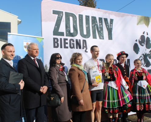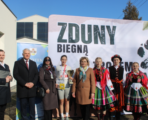 Start biegu, rozgrzewka oraz uroczyste przemowy odbyły się w miejscu absolutnie wyjątkowym. Pomnik Krystyny Idzikowskiej – symbol oddania, odwagi i niezłomności – od lat jest ważnym punktem tożsamości lokalnej szkoły. Dla wielu uczestników, zwłaszcza absolwentów dawnego LO Zduny, było to jak powrót do lat młodości, do czasów, gdy patronka szkoły była kimś więcej niż nazwiskiem na sztandarze. Była inspiracją.