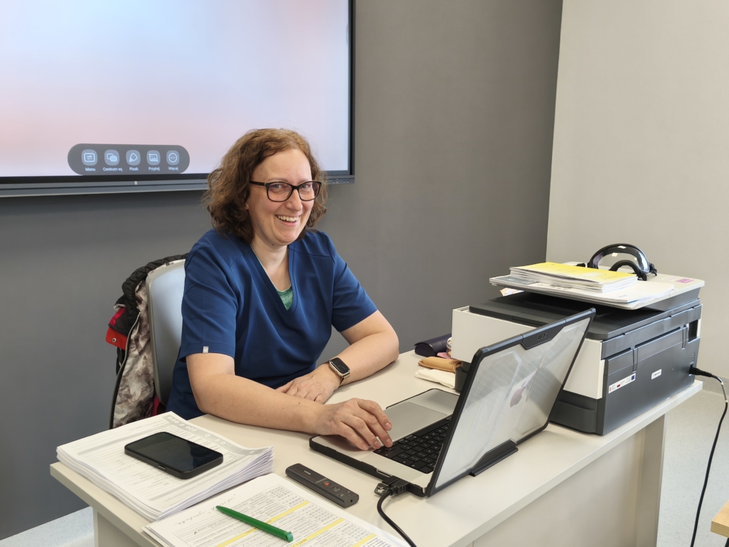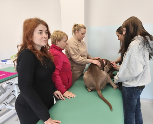 Zajęcia prowadziła dr hab. Ewa Jastrzębska, ceniona ekspertka w dziedzinie zoofizjoterapii, która dzięki ogromnemu doświadczeniu i wyjątkowej energii stworzyła atmosferę sprzyjającą nauce, wymianie wiedzy i praktycznemu doskonaleniu umiejętności.